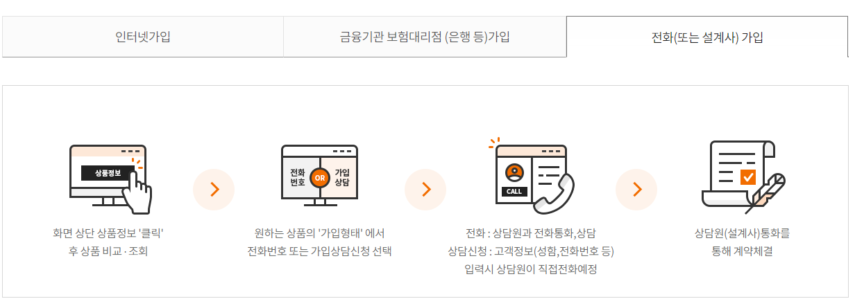 온라인이 어려우신 분들은 가입경로를 선택할 수 있죠 또한 가입 전 전화나 설계사를 통해 전문가의 상담을 받아 볼 수도 있고요